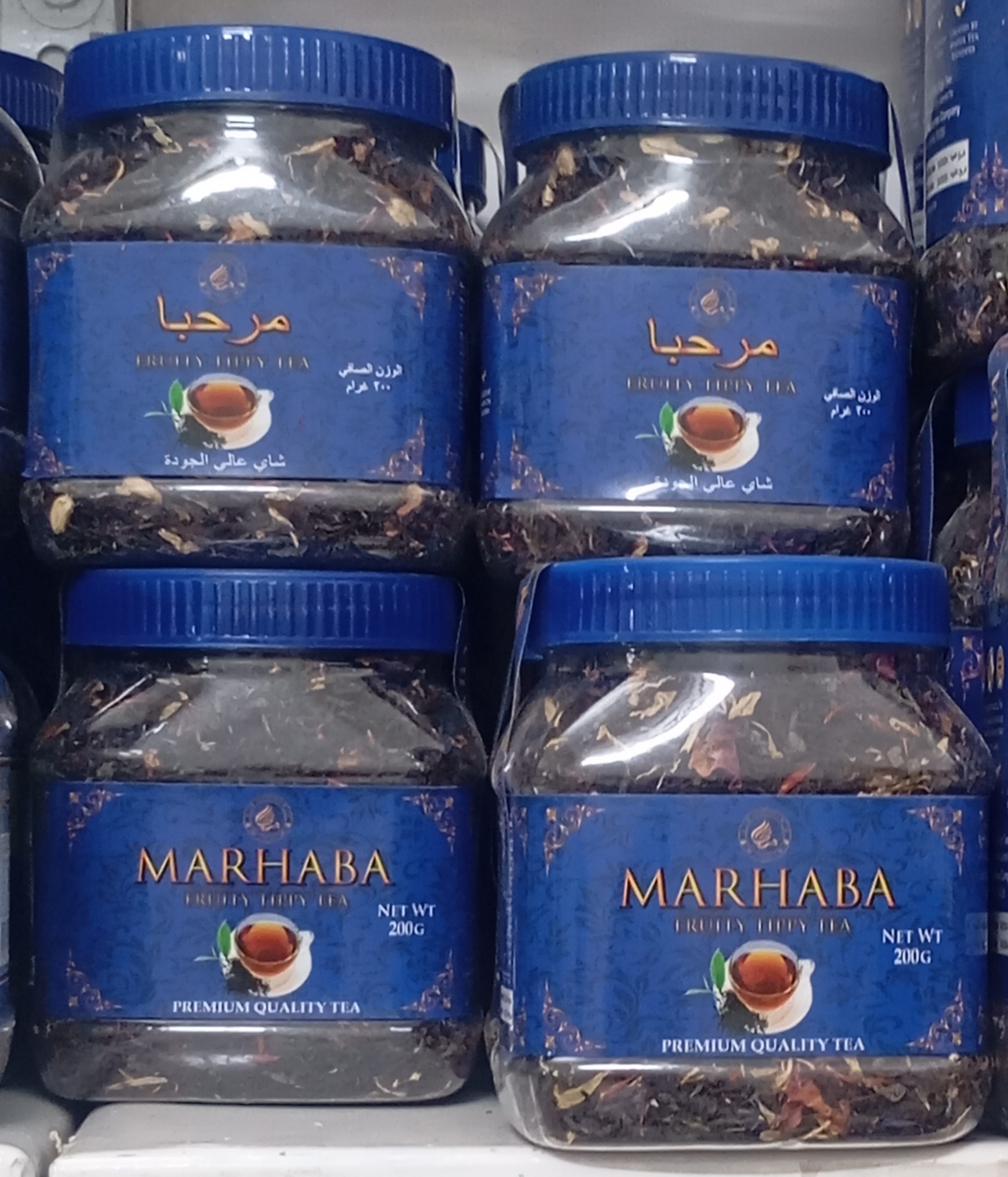 چای مراکشی مرحبا ترکیبی از چای سیاه، چای سبز، شکوفه یاس، تکههای میوههای استوایی، برگاموت، گل گلرنگ و روغن سورسپ است. این ترکیب متنوع به چای طعم و عطر خاصی بخشیده و خواص آن را افزایش میدهد.